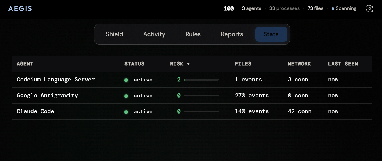 Aegis is designed to be non-intrusive. It runs as a background daemon, consumes minimal resources, and never modifies your agents or their output.
